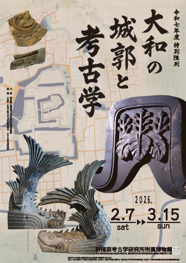 奈良県には古代山城の高安城をはじめ、中近世にも城館が数多く築かれました。中世の大和は大和在地の武士たちが城を構えて統治する群雄割拠の時代であったといえます。織田信長による大和一国諸城破却令により郡山城以外の大和諸城が破却されると、郡山城が大和一国統治の拠点となります。豊臣政権下では豊臣秀長が郡山城に入城すると、郡山城、高取城、宇陀松山城の整備をはじめ、領国支配を進めていくことになります。今回の特別陳列「大和の城郭と考古学」では、これら大和の城郭の歴史やこれまでの発掘調査成果、そして発掘調査の出土品を紹介します。
